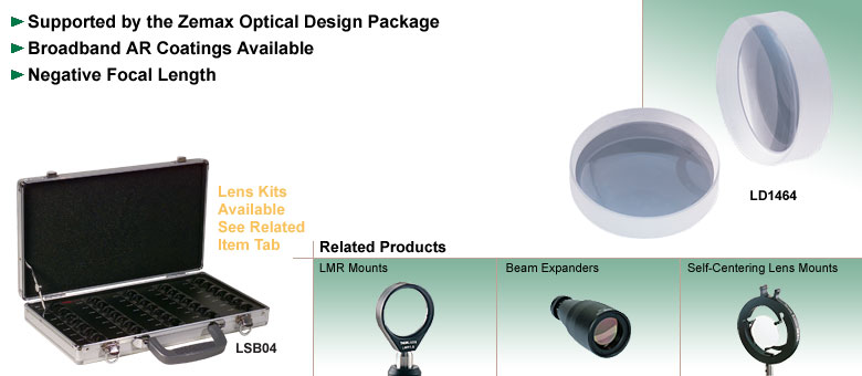 Thorlabs BK7 和 SF11 双凹透镜在许多应用中广受欢迎。双凹透镜具有负焦距,最适合用于使会聚光束发散。与平凹透镜类似,双凹透镜也能使光束发散。准直光束至伽利略型扩束器中所用的虚拟焦点。