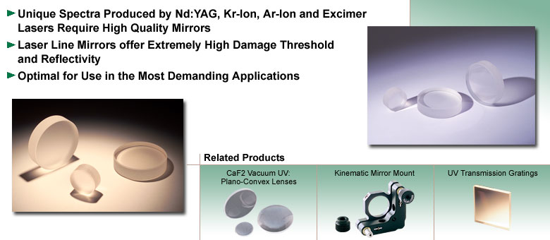 Thorlabs提供种类丰富的Ar-Ion激光镜片,可满足不同波长及高功率光束的需求。这些镜片覆盖了四个激光波长:244-257纳米、300-308纳米、333-364纳米以及458-528纳米。每片镜片的平均反射率均高于99.5%。这些外腔式高能量Ar-Ion激光镜片专为承受高而设计。CW功率。每片光学元件均经过单独测试,以确保平面度优于λ/10,表面粗糙度达到10-5划痕-麻点标准。