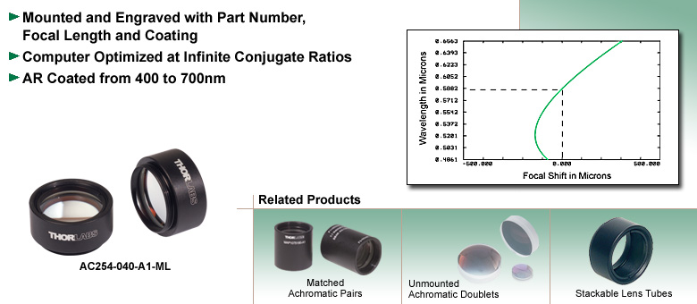 Thorlabs胶合双透镜现已配备专用安装座。这使得操作更加便捷,并可轻松安装至Thorlabs的机械装置中。每个安装座上均刻有镜头零件编号、焦距和镀膜信息。