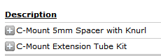 我们的C口延长套件提供各种垫片,可用于缩小视场并缩短标准定焦镜头的工作距离。C口延长套件包含0.5毫米、1毫米、(2个)5毫米、10毫米、15毫米和40毫米的垫片。通过增加垫片来缩短工作距离,会使镜头被迫在通常超出其设计工作距离的范围内对焦,从而可能导致畸变增大、色差和球差加剧、景深减小、照度不均匀以及聚光能力下降。C口延长管和黄铜垫圈也可单独出售。
