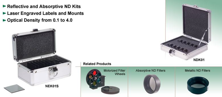 Thorlabs反射式与吸收式中性密度(ND)滤光片套件以便捷的收纳盒形式提供我们广受欢迎的滤光片。
