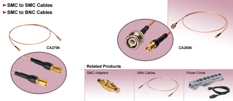 本页面列出了Thorlabs销售的所有一端或两端均配备SMC连接器的电缆。以下链接将带您前往包含BNCSMA、USB香蕉连接器的电缆网页。