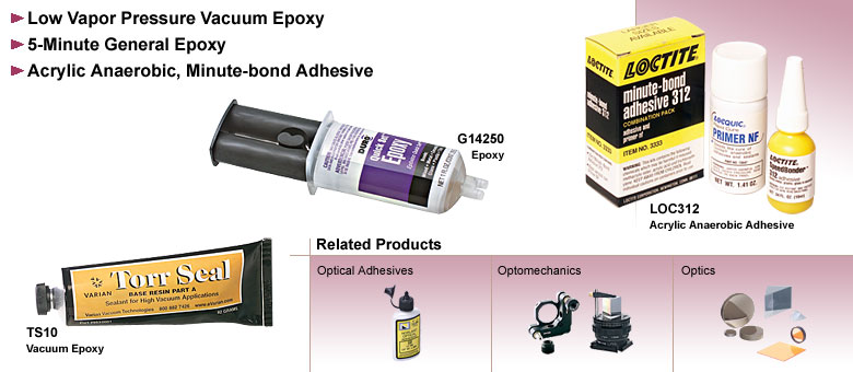 针对实验室的通用用途,Thorlabs提供以下几种通用胶粘剂和环氧树脂。本页面包含5分钟固化环氧树脂、低蒸气压真空环氧树脂、丙烯酸厌氧胶(Loctite)以及环氧树脂混合套装。