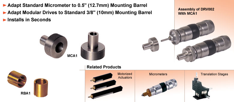 桶形适配器可将带Ø3/8英寸和Ø10毫米安装衬套的执行器安装到专为接受Ø1/2英寸衬套而设计的平台中。这些适配器特别适用于将诸如直流伺服电机执行器安装到LNR系列平台。