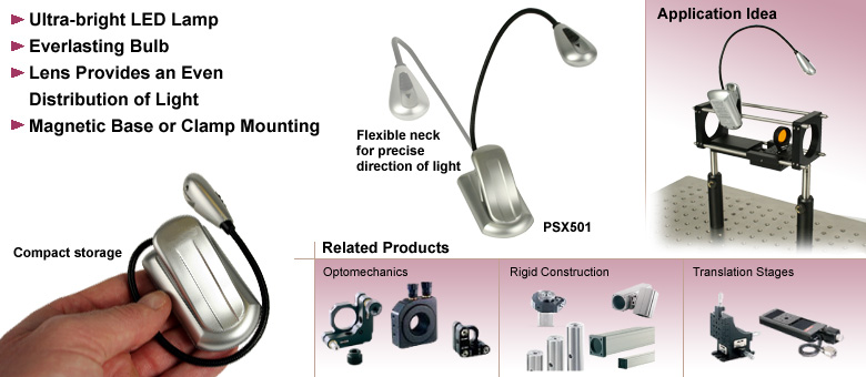该装置可通过夹子固定件或磁性底座连接到工作台面上。灵活的灯颈可轻松将光线导向感兴趣的区域。