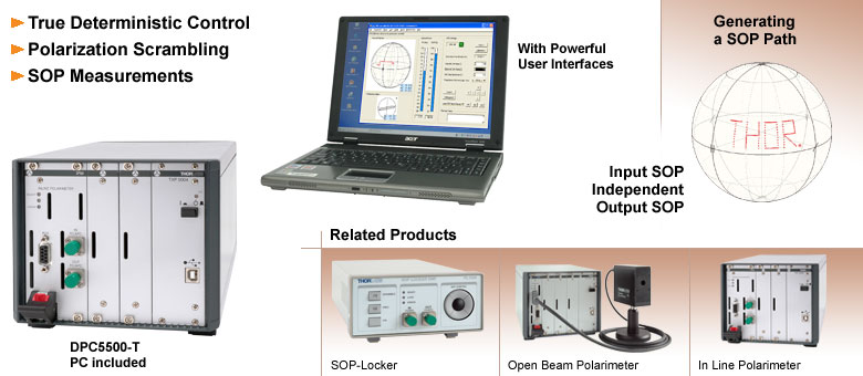 功能 它可在光学系统中用户自定义的位置实现偏振态控制,从而能够精确地沿庞加莱球上的预定路径调整偏振态。与现有系统相比,DPC5500消除了大多数市售偏振态控制器的不足之处——这些控制器的输出偏振态依赖于输入偏振态。该DPC5500也不像大多数其他商用高速SOP控制器那样,受到漂移和迟滞效应的影响。该产品的全新全光纤技术可实现真正的确定性控制,且插入损耗极低。