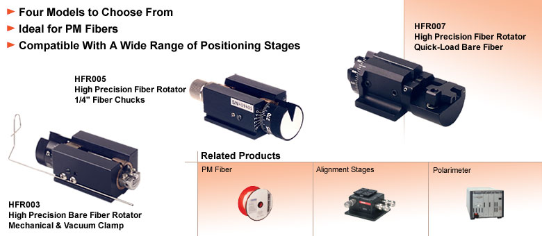 HFR003可在光纤纤芯中心附近旋转单模光纤,旋转角度为360º时,最大偏心度可达2 µm,前提是纤芯和包层均无偏心。通常情况下,若纤芯和包层存在偏心,则旋转360º时的最大偏心度会增加至5 µm。最小侧向偏移量可确保光纤旋转时耦合效率几乎保持恒定,这一点在对接耦合或熔接保偏光纤等应用中尤为重要。该精密光纤旋转器已针对外包层直径为125µm的光纤(去除缓冲涂层后)进行了预先调整。光纤位于旋转器中,采用机械或真空夹持装置,可确保光纤稳固地固定在原位。这款精密光纤旋转器支持光纤的侧向加载,并能实现平稳、连续的360°角度旋转。带刻度旋钮和游标尺可将角度位置精确至1°以内。一旦设定好位置,即可使用锁定螺钉固定光纤纤芯的角度位置。