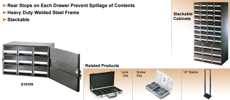 这些重型储物柜采用坚固的焊接钢制框架和耐用的塑料抽屉。您可以直接将这些柜子安装在实验室墙上,也可以将它们叠放起来;每个柜子底部的四个小脚可 snugly 插入上方柜子顶部的配套凹槽中。