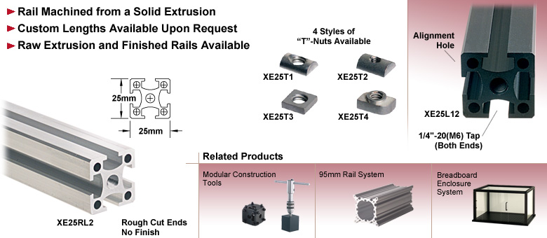 XE25结构导轨拥有我们导轨系列中最紧凑的外形,非常适合用于轻型结构,例如外壳系统和通用轻型遮光装置。这些导轨采用实心挤压型材加工而成,四面均开有槽道,可用于安装我们的T型螺母,从而实现光学元件和建筑构件的灵活固定。