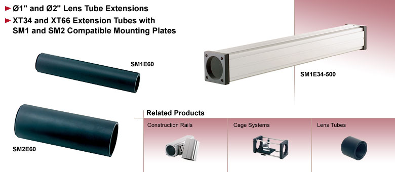 为了将实验扩展至6英寸以上的距离,我们提供SM1E34和SM2E66系列延长筒,以实现更坚固的结构。这些延长筒基于我们的XT34和XT66结构导轨,可与Ø1英寸和Ø2英寸镜头筒系统配合使用,长度可达40英寸(1025毫米)。