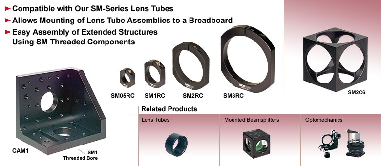 所有安装座均适用于1英寸和2英寸镜头筒(SM1和SM2)。此外,滑环也可用于0.5英寸(SM05)和3英寸(SM3)镜头筒。