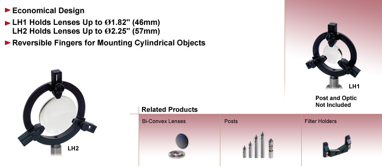 LH2可安装直径从Ø0.75英寸(19毫米)到Ø2.25英寸(57毫米)的光学元件;