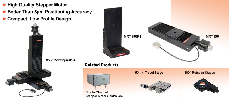 NRT系列可由Thorlabs的步进电机控制器驱动,例如BSC101,该控制器自带专用软件包;不过,也可使用任何第三方控制器。当与我们的BSC101适配型TM步进电机控制器配合使用时,NRT平移台可实现40纳米的微步分辨率,最高速度可达12毫米/秒。