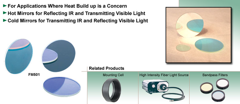 Thorlabs热反射镜非常适合防止不必要的热量进入您设备的敏感区域。在需要关注热量积聚的应用中,0度入射角的热反射镜可通过阻挡红外线来提供保护。