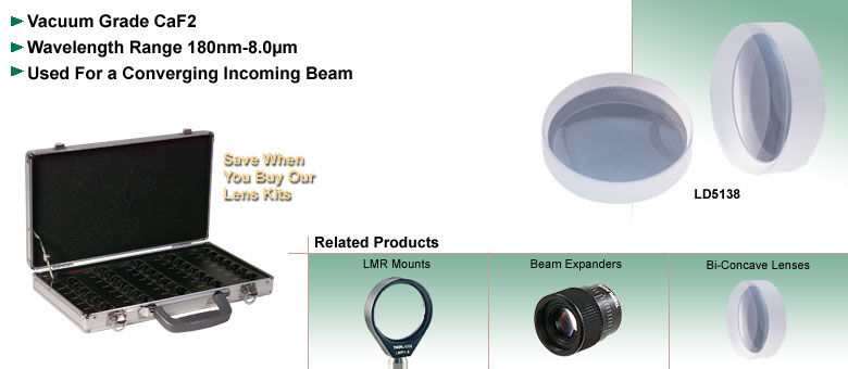 Thorlabs CaF双凹透镜在许多应用中广受欢迎。双凹透镜具有负焦距,最适合用于使会聚光束发散。与平凹透镜类似,双凹透镜也能使光束发散。准直光束至伽利略式扩束器中的虚拟焦点。