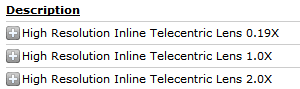 这一系列高分辨率远心镜头专为实现同轴照明而设计。因此,它们非常适合需要强烈且直接照明的应用场景。同轴接口可兼容1/4英寸光纤束,其套筒直径为0.312英寸,便于与我们种类丰富的光导管和照明器轻松连接。