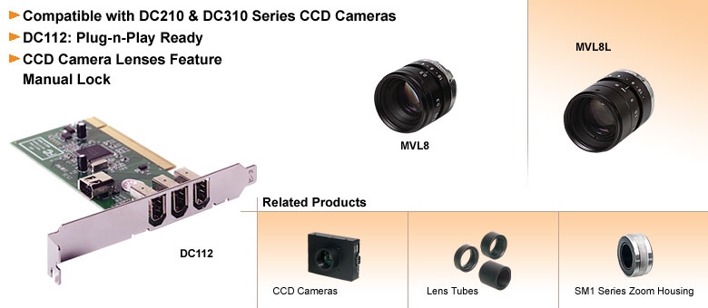 Thorlabs提供DC112 IEEE1394 PCI卡,可安装到目前尚未配备IEEE 1394接口的电脑中。DC112在Windows 2000和Windows XP系统中可被即时识别为即插即用设备,电脑启动后即可立即启用。这避免了使用帧采集卡时通常会遇到的所有困难。