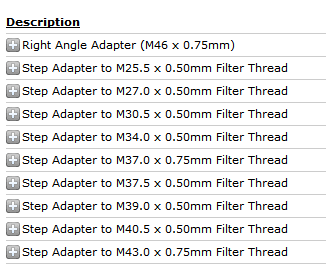 直角适配器采用棱镜设计,外壳配备M46接口,可通过转接环(另售)轻松适配螺纹规格介于M25.5至M43的镜头。该适配器可全方位360°调节,并配有锁定拇指螺丝,以确保组件位置的稳定性。