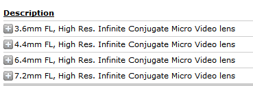 * 角度视场以最大传感器格式的水平视场列出。** 以20%对比度测量
