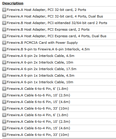 PCI FireWire.a 卡为单总线卡,而 PCI FireWire.a 双卡则提供双 FireWire 总线,以提升多摄像头应用的性能。这两款卡均适用于 32 位端口的计算机。PCI-X 是一款单总线 FireWire.b 卡,适用于配备 32 位或 64 位 PCI-X 端口的计算机。PCI-E 和 PCI-E 双接口均为 FireWire 单总线和双总线卡适配器,适用于 PCI Express 32 位和 64 位端口。
