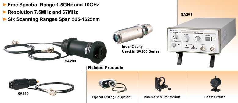 SA200系列由扫描法布里-珀罗干涉仪组成, 每台仪器的自由光谱范围(FSR)均为1.5 GHz。在这些型号中,法布里-珀罗干涉仪的腔体经过精心设计,几乎不受温度影响,利用内部压电堆栈的负热膨胀系数来抵消因瓦外壳微小的正热膨胀系数。凭借超过200的精细度以及1.50 GHz型号7.5 MHz的分辨率,这些腔体提供了一个极为精确且稳定的测量平台。此外,633 nm处每自由光谱范围仅需5 V的低扫描电压使它们易于使用,而腔体的共焦结构则大大简化了对准过程。