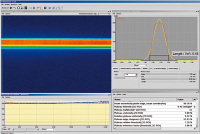 高功率近场透镜用于放大激光线,以获得更高分辨率。相机沿激光线自动移动,每一步采集一帧图像。Beamlux II软件将所有单帧图像拼接成一张全景图。此图片采用我们Beamlux II软件的所有功能进行评估。