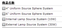 4”均匀光源系统有一个1.5”的端口,两个1”的端口;6”均匀光源系统有一个2.5”的端口和两个1”的端口。各种系统包括4个不同尺寸的衰减器,使用者可定制系统,端口衰减器可接0.5”的探测头,并留有 1/4-20TPI的安装孔用来安装。有两种光源可选:10W 钨丝卤素灯,安装在内部,通用电源供电;或使用30W 外置灯,包括通用电源和手动操作的可变衰减器来控制输出。电源为8.3" W x 10.5" D x 3.5" ,重量为6.5磅。