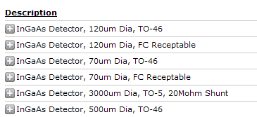 InGaAs光电二极管规格