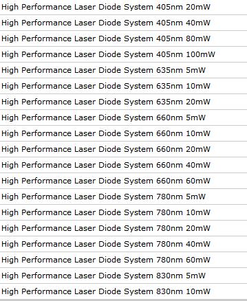 这些高性能的激光二极管系统结合激光头,电源和驱动电子在一个小包 (405nm系统利用外部激光头的尺寸为120mm L x 90mm W x 60mm H)。他们提供的输出功率范围从5mw到100mw和波长范围从405nm到830nm。TE冷却器在宽温度范围 (10 °C至35 °C) 内提高了可靠性,同时最大限度地减少了功率波动,使其成为生物技术研究、计量、光致发光,印刷,粒子计数和检查。随附的电源具有低功耗 (<40w) 和一个通用AC/DC转换器,用于稳压5v DC (10v DC 405nm) 输出采用标准的100-240v交流输入。所有型号都是CDRH认证的IIIb类和功能远程联锁钥匙盒。每个系统都包括一个USB 2.0即插即用接口和易于使用的软件包,允许完全控制输出功率,基板温度,TTL触发和设置。