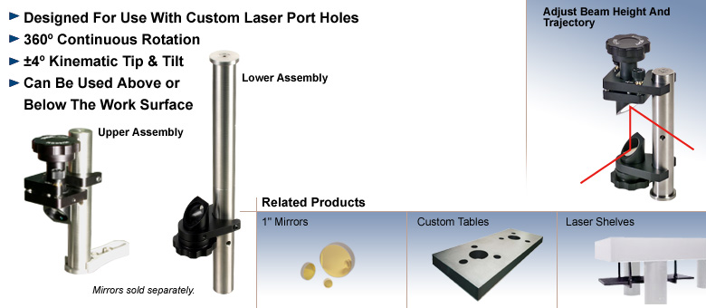我们的精密光束转向系统提供了一个安全和方便的激光设置,是专为定制的光学表配有激光端口孔。该系统提供了在光学系统内调节光束的高度和方向的便利手段。