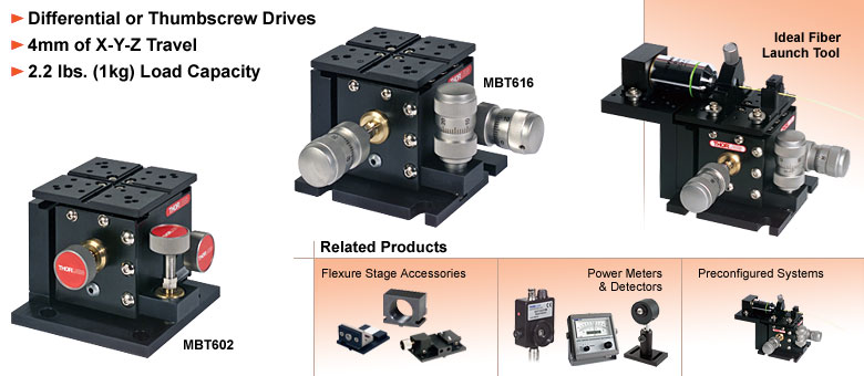 MBT602平台是一款经济型3轴柔性平台,配备螺钉调节器,螺距为0.5毫米。