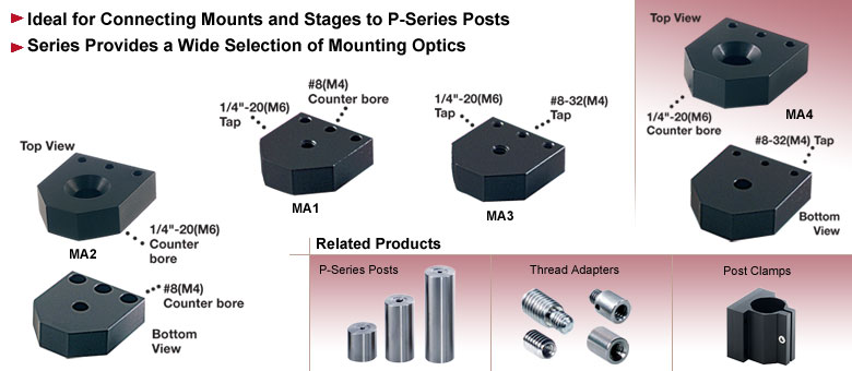 这些安装柱适配器最常被固定在我们P系列柱的末端,用作安装平台,以固定我们的光学机械组件。