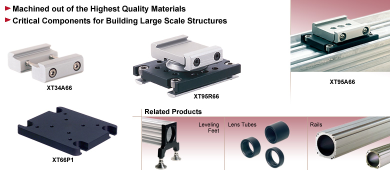 XT66P1螺栓可固定于XT66系列导轨或XT34系列导轨的末端,从而直接安装到光学平台上,以构建刚性三维结构。