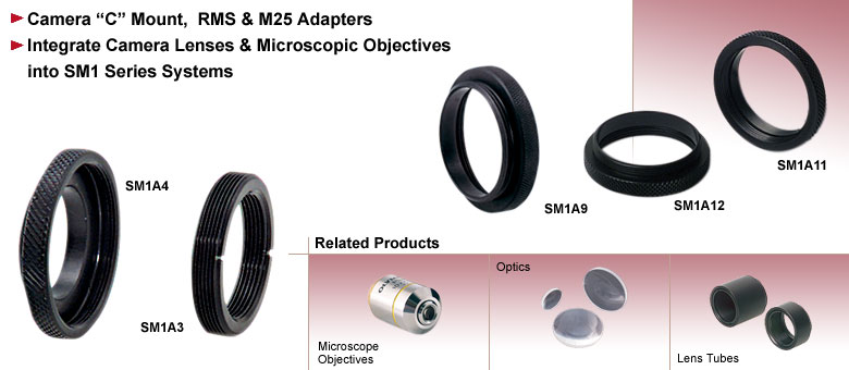 我们的C口适配器可用于将相机镜头集成到SM1系列系统中,也可用于将SM1系列光学组件适配到相机系统。